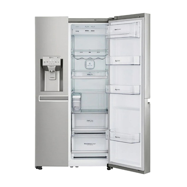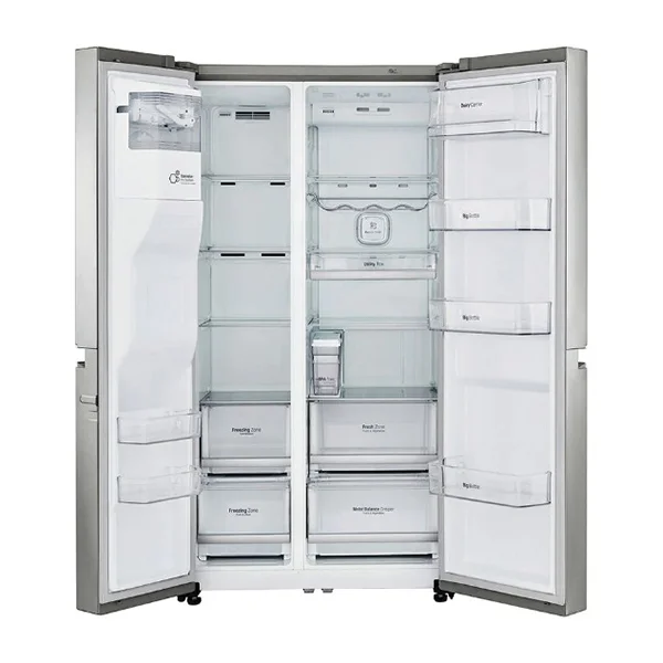 یخچال ساید بای ساید ال جی بنتلی 34 فوت J337 مدل GRJ337CSBL با طراحی داخلی بسیار زیبایی مجهز شده است که انواع مواد غذایی و سبزیجات و میوه جات را در خود جایی می دهد. در این محصول قسمت یخچال از طبقه و کشوهایی بهره گرفته شده است که از جنس شیشه حرارت دیده طراحی شده اند. این یخچال دارای 4 طبقه داخلی است که قابلیت تظیم هم را دارند و می توانید مواد غذایی های زیادی روی آن قرار دهید که بسیار محکم نیز هستند. همچنین با داشتن 2 کشوی در پایین یخچال که میوه جات و سبزیجات را می توان داخل آن قرار داد که گردش هوای خنک مانع از پوسیده شدن آن ها می شود. نیز 4 طبقه برای درب یخچال طراحی شده تا قوطی آب و دیگر نوشیدنی ها را داخل آن قرار دهید که بسیار مناسب و عالی است. و اما فریزر این محصول ال جی مدل J337 دارای 4 طبقه برای گذاشتن مواد غذایی که با استفاده از کمپرسور اینورتر خطی به سرعت منجمد می شوند و مانع از خراب شدن آن ها می شود. همچنین دو کشو در پایین طبقات قرار دارد که برای گذاشتن گوشت و دیگر مواد غذایی بسیار مناسب است. و دو طبقه بر روی درب که مواد بسته بندی شده بسیار مناسب است. پس نتیجه می گیریم که این یخچال از طراحی بیرونی و داخلی بسیار زیبایی برخوردار است و نیز ظرفیت بالایی را دارد.