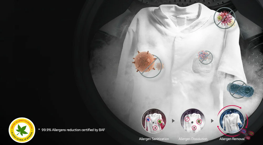 چرخه آلرژن آلرژن های رایج خانگی مانند کنه های گرد و غبار و شوره حیوانات خانگی را از بین می برد. ضد عفونی کننده آلرژن با بخار اتمیزه شده به الیاف نفوذ می کند تا عمیقا ضد عفونی شود. انحلال آلرژن از دماهای بهینه برای حل کردن آلرژن های شل شده از لباس استفاده می کند. حذف آلرژن تمام آلرژن ها را در طول چرخه های شستشو و چرخش دور می کند. کنترل لمسی دارای طراحی یکپارچه و شیک است که حسی از پیچیدگی را به خانه می آورد. هر مدل در خط تولید یک صفحه کنترل لمسی با زاویه برای حداکثر دید ارائه می دهد. موتور درایو مستقیم اینورتر ال جی مستقیماً بدون استفاده از تسمه یا قرقره به درام متصل می شود. قطعات مکانیکی کمتر اتلاف انرژی کمتری را تضمین می کند که عملکرد شستشو را افزایش می دهد ، صدای کم و لرزش ، دوام بیشتر و صرفه جویی در انرژی را تضمین می کند. فناوری 6 حرکت DD ترکیبات حرکتی بهینه سازی شده را برای هر نوع پارچه فراهم می کند. بنابراین عملکرد شستشوی قدرتمندی را با آسیب کمتر ارائه می دهد.