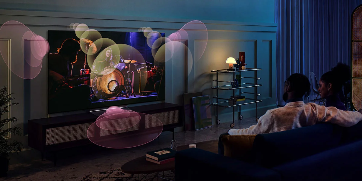 امتیاز این تلویزیون در بخش صدا 3.5 از 5 می باشد. این تلویزیون بالارده ال جی در واقع دارای سیستم صوتی 2 کاناله می باشد به طور کلی میزان صدای 40 وات را به گوش مخاطبان خود می رساند. این میزان صدای 40 وات در واقع میزان صدای مناسبی برای این تلویزیون 55 اینچ می باشد. اما اگر به هر دلیلی خواستار صدای بلندتری بودید می توانید از طریق بلوتوث باند اسپیکر خود را به این تلویزیون به راحتی متصل نمایید. یکی از قابلیت های صدایی در این تلویزیون که نقش بسیار مهمی را ایفا می کند قابلیت Dolby Atmos می باشد. در واقع این قابلیت این امکان را می دهد تا صدا به صورت نسبتاً سه بعدی در تمام فضاپخش شود و شما شنوای یک صدای فراگیر و سینمایی باشید. قابلیت Clear Voice سبب می شود که دیالوگ ها واضح به گوش برسند و صدا ها را بسیار شفاف بشنویید.تلویزیون ال جی 55C3 با بهره گرفتن از پردازشگر قدرتمند Alpha9 Gen6 می تواند صدا را به بهترین شکل پردازش کند و نویز تصاویر را حذف خواهد کرد به نحوی که در نهایت صدایی بسیار واقعی تر را به گوش مخاطبان می رساند. قابلیت Al Sound Pro نیز در این تلویزیون سبب می شود که صدا به صورت خودکار با توجه به شرایط محیط تنظیم شود.