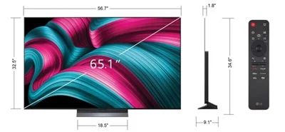 تلویزیون ال جی مدل 65C5 از سری تلویزیون های اولد ( OLED ) و سری جدید و هوشمند آن میباشد که در سال ۲۰۲۵ تولید شده ز سری OLED evo AI محسوب میشود. دارای نمایشگر ۶۵ اینچ و صفحه تخت است. تصویر با کیفیت و صدای واضح و فراگیر دارد. تلویزیون ال جی بدنه کم ضخامت و باریکی داشته و طراحی شیک آن نگاه همه را در میان دیگر تلویزیون ها به سمت خود میکشاند. کیفیت تصویر آن 4K با رزولوشن 2160 × 3840 پیکسل است و توانایی ایجاد تصویر با کیفیت و همراه با جزئیات را دارد. فناوری اولد در این تلویزیون ال جی باعث میشود تا صفحه نمایشگر به صورت یک جا خاموش و روشن نشود و پیکسل های آن به صورت مجزا و مستقل خاموش و روشن شوند و این کار در نقاط تیره تصویر کاربرد عالی دارد و به آن عمق میدهد. از دیگر خصوصیات بخش تصویر در این دستگاه فناوری Brightness Booster است که کار آن تقویت هر پیکسل برای ارائه جزئیات روشن تر و دقیق تر میباشد. ال جی برای جلوگیری از بازتاب نور نمایشگر تلویزیون اولد خود از قابلیت Bright Room Ready استفاده کرده و در محیط های روشن عملکرد خوبی دارد و همان گونه که گفته شد مانع از بازتاب نور میشود و تصویر را عالی به نمایش در می آورد. پردازشگر موجود در تلویزیون ال جی ۶۵ اینچ از جدیدترین نوع آن است و از هوش مصنوعی بهره مند میباشد این پردازنده α9 Al Processor Gen8 نام داشته و با خود قابلیت های عالی زیادی هم در بخش صدا و هم در بخش تصویر این تلویزیون ایفا میکند. قادر است تا تصاویر کم کیفیت و قدیمی را در سطح 4K در آورده و برای این کار از فناوری های Al Picture Pro و Al Super Upscaling استفاده میکند. مغز متفکر تلویزیون اولد سی پنج پردازنده آلفا ۹ نسل ۸ است و همچنین از فناوری Dynamic Tone Mapping و کنترل هوشمند روشنایی و انتخاب ژانر اسمارت برخوردار میباشد. این تلویزیون رفرش ریت ۱۲۰ هرتز با قابلیت VRR تا ۱۴۴ هرتز دارد که برای انجام بازی های رایانه ای فوق العاده بوده و تصویری بدون تاری و گرفتگی و روان را به نمایش در می آورد. از این رو برای نمایش بازی ها، مسابقات و فیلم های پر سرعت از جمله ژانر اکشن عالی خواهد بود و از لذت آن نمیکاهد و هیچ صحنه ای را از دست نخواهید داد. این تلویزیون ال جی هوشمند است و در آن سیستم عامل نام آشنای ال جی یعنی WebOS به کار رفته است. از نوع پیشرفته سیستم عامل را دارا میباشد. مجهز به ریموت کنترل جادویی Magic Remote بوده و با این ریموت کنارل میتوان فرمان های صوتی به تلویزیون داد. علاوه بر آن از امکاناتی هم چون همگام سازی با محصولات اپل و دیگر دستگاه های هوشمند اندرویدی را دارد. از نظر سیستم صوتی نیز این تلویزیون اولد ال جی ۲۰۲۵ بهترین سیستم صوتی را در بین هم نوعانش دارد. از توان صوتی ۴۰ وات بهره مند بوده و دارای فناوری های صوتی Dolby Atmos و Al Sound Pro و ... جهت ایجاد صدای شفاف و بدون نویز است. از قابلیت اتصال صوتی به صورت بی سیم WiSA بهره مند میباشد.