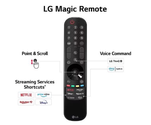 این تلویزیون ال جی 2023 با نصب روی دیوار مانند یک تابلوی هنری به نظر میرسد و باعث میشود تا کاربران بر روی محتوای مورد نظر متمرکز شوند. محل قرار گیری پورتها و درگاهها در کنارهای تلویزیون قرار گرفته است تا دسترسی به آنها راحتتر صورت گیرد. همچنین مجهز به ریموت کنترل جادویی است کاملاً خوش دست و شیک طراحی شده است و مانند اشارهگر ماوس عمل میکند که میتوانید نمایشگر را تحت سلطهی خود در آورید. این تلویزیون با رنگ مشکی و ظاهری آراسته متناسب با دکوراسیون منزل شما طراحی شده است تا درخشانترین جلوه هنری را به شما تقدیم کند.