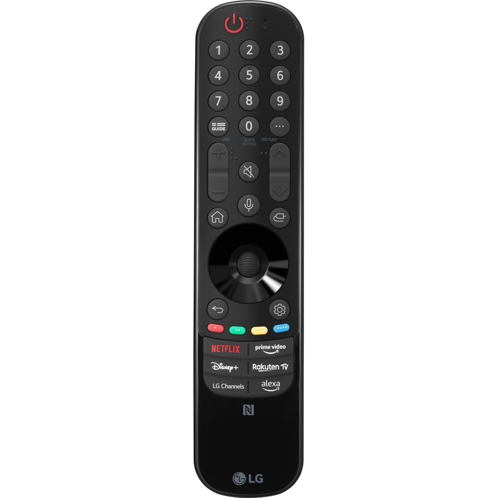 تلویزیون ال جی 2023 سری 8 با پایه وسط که به رنگ نقرهای مزین گردیده است استحکام نمایشگر را حفظ میکند. همچنین شیارهایی در پشت تلویزیون ال جی کیوند 82 قرار گرفته است تا از شلختگی سیمها و کابلها در جلوی نمایشگر پیشگیری کند و در نهایت فضای مرتب و آراستهای را به شما تقدیم کند. این مدل دارای ریموت کنترل هوشمند موسی شکل است که کار را برای کاربران آسان کرده است و از راه دور و با دسترسی به میانبرها از عملکرد بالایی برخوردار است و در نهایت میتوانید مدیریت کامل را داشته باشید و تلویزیون را روشن و یا خاموش کنید، کانالها را تغییر دهید و یا صدا را کم و زیاد کنید و جستجوی صوتی انجام دهید.