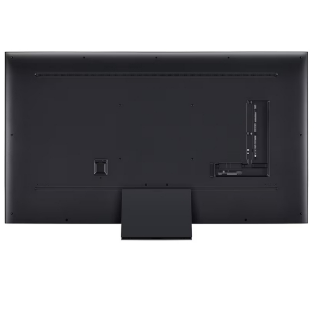 تلویزیون ال جی 65QNED816 دارای پایه مرکزی می باشد که در وسط تلویزیون قرار گرفته است. این پایه بسیار محکم می باشند که هیچ گونه لرزشی ندارند و ثابت وزن تلویزیون را تحمل می کنند. این پایه مرکزی به دلیل پهنای کمش روی هر نوع میزی قرار خواهد گرفت. البته برای علاقمندان نصب تلویزیون بر روی دیوار باید گفت که می توانید به سادگی با حذف پایه های تلویزیون و به وسیله براکت مناسب، تلویزیون را بر روی دیوار نصب کنید. قسمت پشتی این تلویزیون کاملا ساده و با رنگ مشکی ماتی طراحی شده است. در طرف راست این تلویزیون درگاه های ارتباطی تعبیه شده است که از طریق آن می توانید فلش و کابل ها را متصل کنید. بدنه این تلویزیون بسیار محکم است و در برابر هر ضربه ای استحکام زیادی دارد.