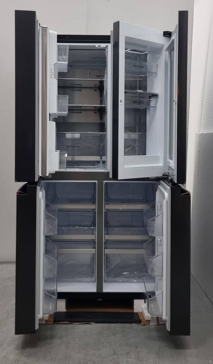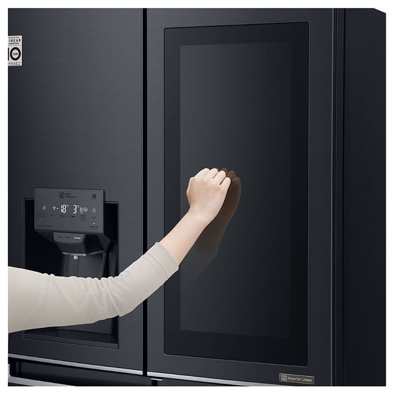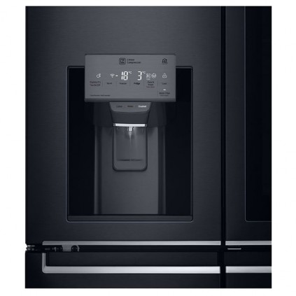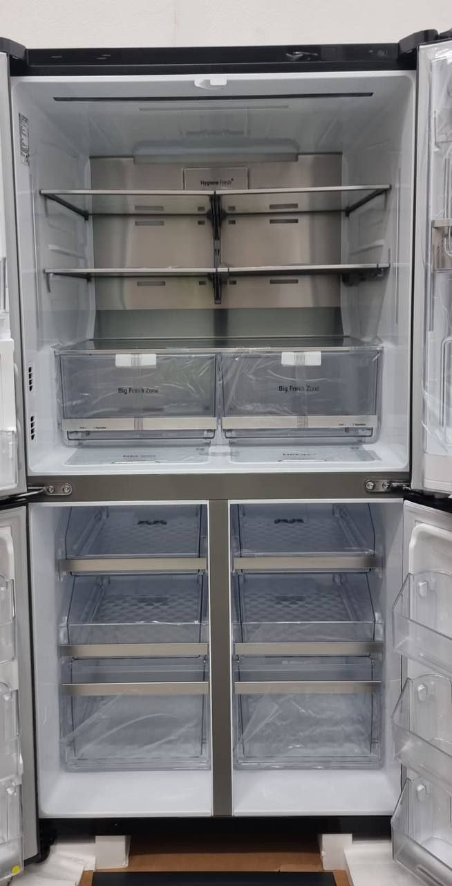 در مجموع 5 درب برای این محصول ساخته شده است. دو درب سمت بالا مخصوص یخچال هستند. دو درب قسمت پایین هم فریزر را تشکیل داده اند. آن درب دیگر هم به هوم بار مربوط می شود که بر روی درب یخچال وجود دارد. بر روی درب یخچال و در سمت چپ پنل و صفحه نمایش طراحی شده است. پایین تر از پنل آبریز و یخساز اتوماتیک وجود دارد که از طریق اهرم موجود مورد استفاده قرار می گیرد. درب ها از طریق دسته های مخفی با راحت ترین حالت ممکن باز و بسته می شوند.