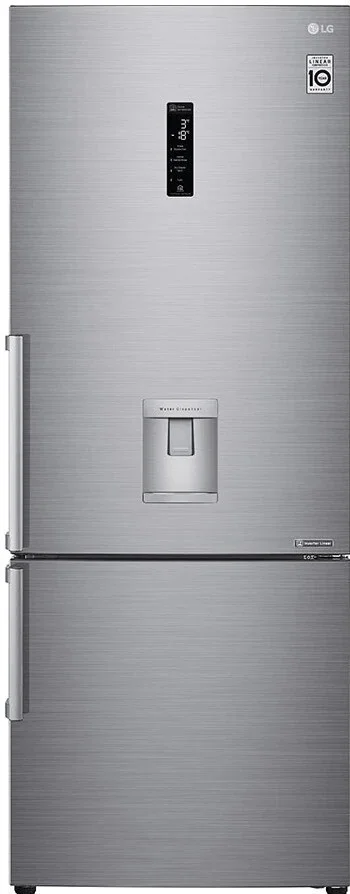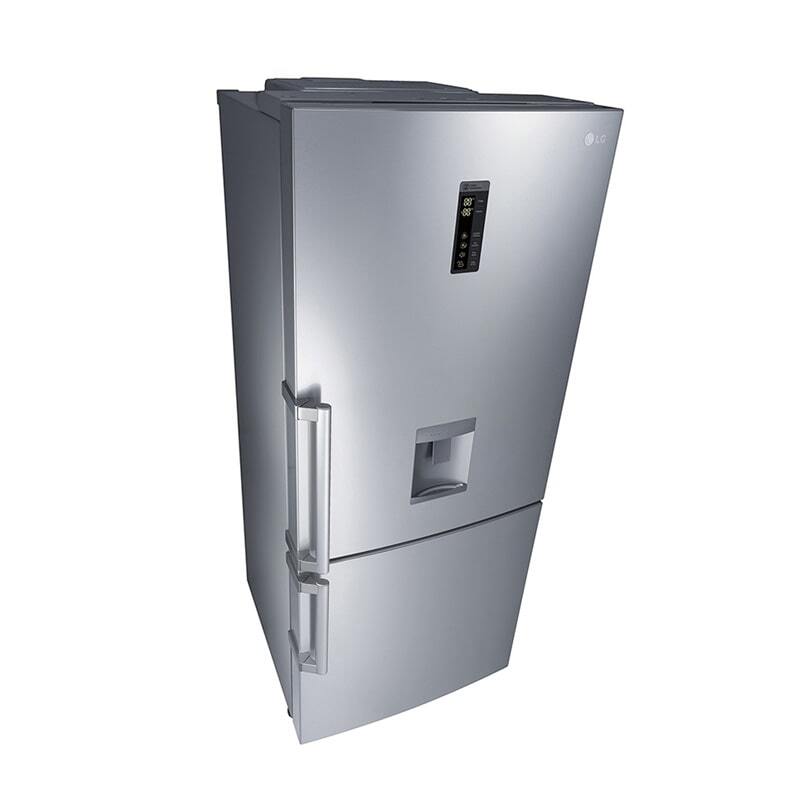 قسمت یخچال این مدل در بالا بوده و بخش فریزر در پایین قرار دارد. درب هر دو به سمت راست باز خواهد شد. بر روی درب یخچال و در وسط بدنه یک آبریز وجود دارد. همچنین صفحه نمایش نیز بر روی درب یخچال جا خوش کرده است. توسط این صفحه تنظیمات مربوط به دما و … انجام داده می شود. حتی فرد می تواند با مشاهده ی آن از وضعیت یخچال خود اطلاع داشته باشد. در زیر محصول نیز چرخ هایی جهت حمل و حرکت در نظر گرفته شده است. شرکت ال جی برای استفاده ای راحت تر بر روی هر دو درب دسته هایی در نظر گرفته است. اندازه و ابعاد آن نیز برای هر محیطی استاندارد و عالی می باشد.