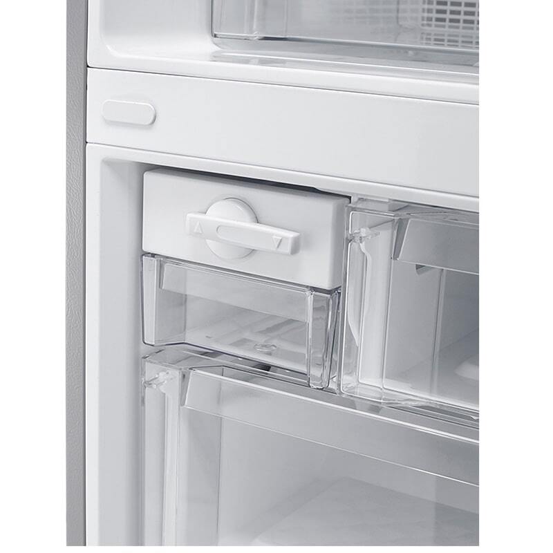 پس در این حالت می توان اطمینان داشت که مواد غذایی در حجم بالا داخل این وسیله قرار داده می شود. بخش یخچال از 2 عدد کشو و 3 طبقه طراحی شده است. درب نیز 3 قفسه دارد. قفسه دیگری نیز وجود دارد که علاوه بر مخزن آب فضای کوچکی جهت قرار گیری بطری و … دارد. اما فریزر از 2 عدد کشو بزرگ و 1 کشو کوچک تر بهره برده است. کنار کشو اول یا همان کوچک یخ ساز دستی نیز وجود دارد. بخش فریزر قادر است تا با این طراحی خود مواد غذایی زیادی را در خود جای دهد.