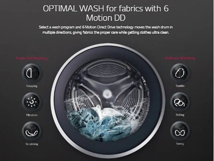 قابلیتهای پیشرفته ماشین لباس شویی ال جی مد F4V5VYP2T و فناوریهای بکار رفته در آنها، از جمله سیستم گردش مستقیم موتور از قابلیت های پیشرفته این ماشین لباس شویی است. این ماشین لباسشویی با موتور AI Direct Drive ال جی می توانند به طور خودکار بهترین تنظیمات را بر اساس وزن و بافت لباس شما برای شستشوی بهینه تعیین کنند. ماشین لباسشویی ال جی F4V5VYP2T به عنوان یک پیشرو در فناوری هوشمند و طراحی شیک راز لباس ها به بهتریت شکل مراقبت می کند و هر بار لباس هایی تمیز و سالم را تحویل کاربران خود می دهد.. موتور درایو مستقیم اینورتر که به ماشین لباسشویی ما نیرو می دهد بسیار قابل اعتماد و واقعاً ساکت است. ما می دانیم که این یکی از بهترین موتورهای ماشین لباسشویی در بازار است ، به همین دلیل تمام ماشین های ما با 10 سال ضمانت استاندارد در موتور ارائه می شوند. اکنون هیچ استانداردی در این باره وجود ندارد. ماشین های لباسشویی ال جی به زیبایی ظاهری لباس های شما کمک می کنند. با لباسشویی ال جی یک تجربه شخصی لباسشویی داشته باشید و با چرخه های سفارشی لباس های درخشان و تمیزتری دریافت کنید. اینورتر DD برای یک شستشوی قدرتمند با سر و صدای کم با استفاده از فناوری LG Inverter Direct Drive که موتور بدون استفاده از تسمه یا قرقره مستقیماً به درام متصل می شود. در نتیجه، قطعات مکانیکی جزئی انرژی کمتری را پراکنده می کنند، که باعث کاهش مصرف برق، افزایش عملکرد شستشو و دوام و کاهش سر و صدا و لرزش می شود.