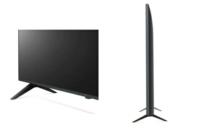 یکی از چشمگیر ترین ویژگی ها برای یک تلویزیون پایه های آن می باشد. ال جی پایه های ایین تلویزیون را به صورت دو شاخه ای عرضه بازار کرده است. این پایه ها در دو طرف تلویزیون قرار می گیرند و مشکی رنگ می باشند که جلوه ای بسیار خاص را ایجاد کرده اند. پایه های دو شاخه ای در بین مردم بسیار محبوب هستند اما اگر علاقمند به نصب تلویزیون می باشید می توانید پایه ها را جدا کنید و آن را به وسیله براکت های مناسب بر روی دیوار نصب کنید که فضای بزرگتر و مرتب تری را ایجاد خواهد کرد. این تلویزیون دارای ضخامت بدنه نسبتا کمی می باشدو جز تلویزیون هایی با ضخامت متوسط می باشد که با نصب بر روی دیوار جلوه بهتر را ایجاد خواهد کرد.
