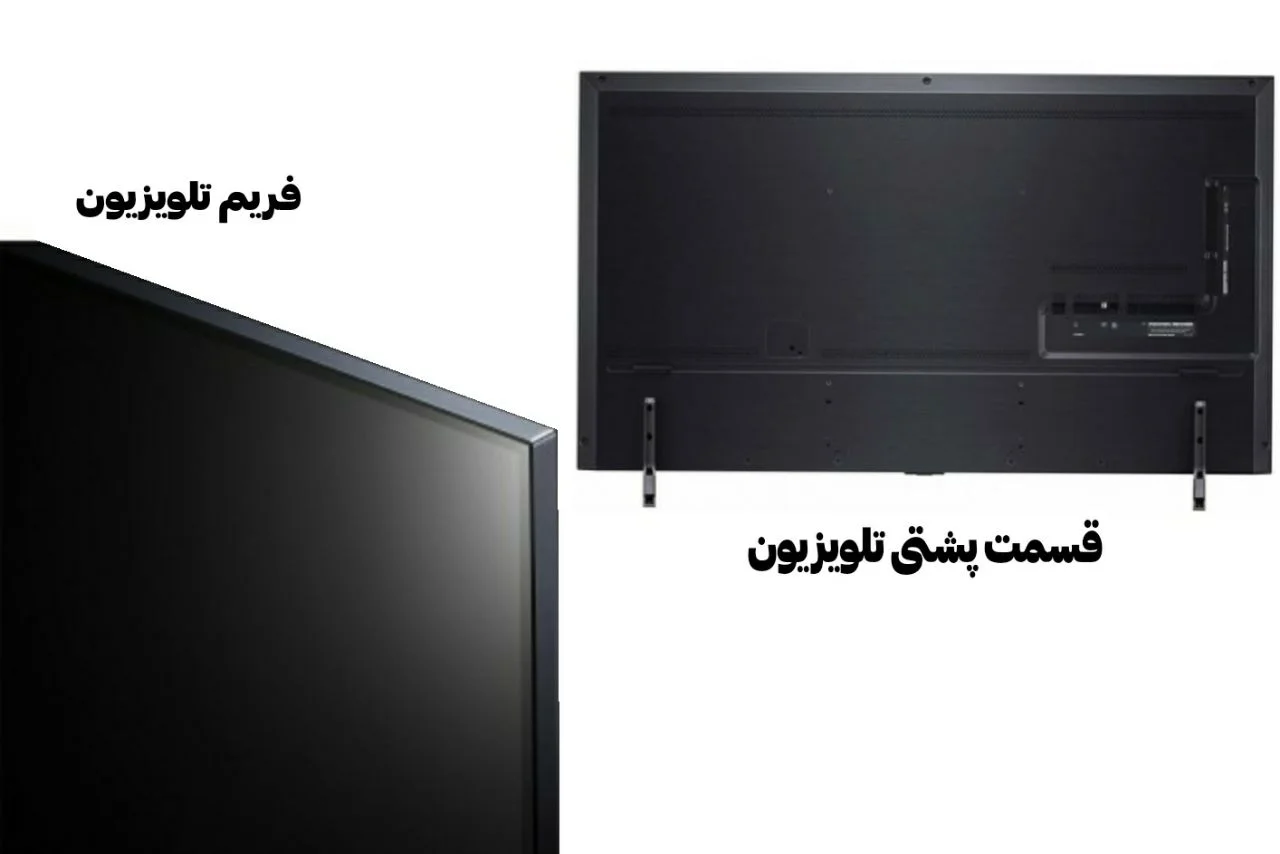 یکی از ویژگی های ظاهری بسیار جلب توجه کننده، پایه ها می باشد. پایه های این تلویزیون از نوع دو شاخه ای می باشد. این پایه ها در اطراف تلویزیون قرار می گیرند و تنها در یک حالت قابل تنظیم می باشند. این پایه ها با رنگ مشکی خاکستری که دارند جلوه ای زیبا را ایجاد می کنند. اگر جز آن دسته از افراد هستید که علاقمند به نصب تلویزیون بر روی دیوار هستید، این تلویزیون از این قابلیت برخوردار می باشد و شما می توانید به راحتی با حذف پایه ها و براکت های مناسب آن را بر روی دیوار نصب کنید. نصب تلویزیون بر روی دیوار می تواند ظاهر مرتب تری ایجاد کند. در رابطه با ضخامت بدنه این تلویزیون باید گفت که این تلویزیون جز تلویزیون های باریک و ظریف نمی باشد و بدنه آن تقریبا ضخیم می باشد.