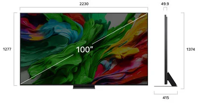تلویزیون ال جی کیوند ۱۰۰ اینچ است و با وجود نمایشگر بزرگی که دارد برای قرار دادن در مکان های بزرگ مناسب میباشد. در واقع یکی از حرفه ای ترین نمایشگرهایی است که در بازار موجود میباشد. از فناوری QNED بهره مند است و کیفیت تصویر فورکی دارد. صدای قدرتمند با توان صوتی ۴۰ وات از دیگر خصوصیات تلویزیون جدید ال جی هستند. این تلویزیون ال جی هوشمند است.