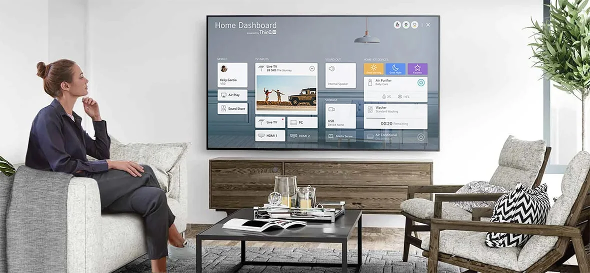 webOS پورتال شما به دنیای سرگرمی است. درباره همه کارهایی که می توانید با تلویزیون هوشمند LG 65NANO99 خود انجام دهید بیاموزید - به راحتی محتوای خود را پخش کنید، اطلاعات را جستجو کنید و موارد دیگر. با" Apple Airplay 2 و Apple HomeKit کار می کند. با استفاده از Airplay 2 سرگرمی را از دستگاه های Apple به تلویزیون خود ارسال کنید، از جمله کتابخانه وسیع محتوای Dolby Vision اپل. همچنین از دستگاه های اپل خود برای پیکربندی، سفارشی سازی و کنترل خانه هوشمند خود با استفاده از HomeKit استفاده کنید. از میان انواع محتوای موجود در کانال های Apple TV، Netflix، و LG انتخاب کنید. در یک مکان همه چیز را از جدیدترین فیلمها، برنامههای تلویزیونی و مستند گرفته تا ورزشهای زنده و خیلی چیزهای دیگر پیدا خواهید کرد. فقط بنشینید و از برنامه لذت ببرید. به لطف پشتیبانی از کدکهای With HEVC، AV1 و VP91، میتوانید ویدیوها را در پورتال YouTube با وضوح 8K و همچنین ویدیوها را از دستگاههای ذخیرهسازی USB یا سرویسهای پخش اینترنتی (جریانسازی) تماشا کنید. با هوش مصنوعی ThinQ AI تلویزیون خود را به مرکز عمل تبدیل کنید. طرفداران ورزش راه جدیدی برای مطلع شدن از تلویزیون 65 اینچ ال جی 2021 نانوسل 8K مدل 65NANO99 دارند. Sports Alert بهروزرسانیهایی را درباره تیمهای مورد علاقه، زمان شروع و امتیازات شما ارائه میکند حتی زمانی که در حال تماشای محتوای دیگر هستید. بدون جستجوی کانال، به راحتی به بازی ها بروید فناوری LG ThinQ به شما امکان می دهد اکوسیستم خانه هوشمند (IoT) خود را از طریق دستورات با استفاده از تشخیص صدای طبیعی کنترل کنید. به لطف این، دیگر نیازی به راننده ندارید. از تلویزیونهای هوش مصنوعی الجی نمای کاملی از دستگاههای هوشمند خود دریافت کنید. دستگاه های جدید را وصل کنید. روال های روزانه منحصر به فرد را برای مدیریت خودکار دستگاه ها تنظیم کنید. روشن و خاموش بودن را کنترل کنید. همه چیز را در یک نقطه از طریق رابط صفحه اصلی ببینید و همه آن را با صدای خود کنترل کنید.