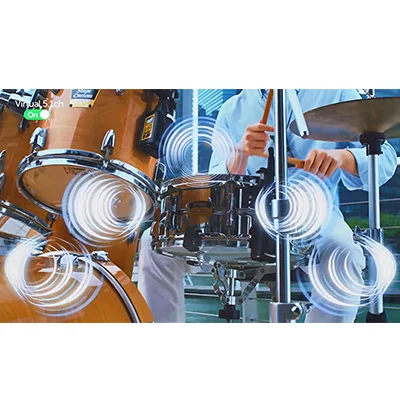 در این تلویزیون ال جی مدل 65UP7550 تکنولوژی به کار رفته است که صدا را با پخشی بلند تر و بهتر به صدا در می آورد. سیستم صوتی به کار رفته در تلویزیون جدید سری هفت ال جی با داشتن 2 کانال صوتی است که مجموعاً توان صوتی 20 وات را فراهم می کنند. بلندگوهای آن دارای قابلیت Down Firing می باشند. از این رو می توانید با کیفیتی بهتر و انرژی زیاد صداها را منتشر کنند. AI Acoustic Tuning ابعاد و دیگر مشخصات مکانی که تلویزیون در آن قرار دارد را ارزیابی می کند و ویژگی و بلندی صدا را با توجه به آن ها تنظیم و پخش می کند تا مناسب ترین صدا برای آن محیط را انتشار دهد. الگوریتم Clear Voice III در تلویزیون 65UP7550 ال جی شرایطی را ایجاد می کند تا دیالوگ های بازیگران فیلم، گوینده ی اخبار، خواننده ی موزیک و صداهای دیگر به صورت واضح تر و بدون نویز پخش شوند. امکان صوتی جالب دیگری که در این تلویزیون فراهم شده است LG Sound Sync نام دارد. که این ویژگی برای صداهای بلند که برای تولد و مهمانی های بزرگ بسیاری کاربرد دارد استفاده شود که صدا را به صورت واضح تر و گشترده تر به گوش همه کاربران خود می رساند و صدایی تنظیم شده که شاهد هیچ گونه نویزی نخواهند بود . و همچنین برای صدایی بلند تر می توان از خروجی اپتیکال آن بهره مند شد و سند بار یا سینما خانگی را به آن وصل کرد و از صدایی خیلی زیاد لذت برد. بدین ترتیب بدون ایجاد ناهماهنگی بین صدای بلندگوهای داخلی تلویزیون و بلندگوهای خارجی متصل به آن می توان صدا را با قدرت و توان بیشتر پخش کرد. با استفاده از Bluetooth Surround Ready هم می توان بدون استفاده از سیم و کابل سیستم های صوتی خارجی و تلفن همراه را به تلویزیون وصل کرد و آن ها را طوری چید که صدا را به صورت چندبعدی و همه جانبه منتشر کنند. و در آخر باید اضافه کرد که یک قابلیت صوتی فوق العاده ی دیگر در این تلویزیون 65 اینچی ال جی وجود دارد که Sound Alive نام دارد که توانایی پخش صدا با 14 افکت مختلف را دارد.