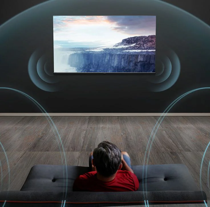 این تلویزیون دارای سیستم صوتی 2.0 کاناله می باشد. به عبارتی دیگر شامل 2 بلندگو 10 واتی می باشد و در کل صدای 20 وات را به گوش مخاطبانشان خواهند رساند. قابلیت صدایی که در این تلویزیون بسیار محبوب می باشد، قابلیت Dolby digital می باشد که سبب ایجاد صدایی فراگیر و همه جانبه خواهد شد و در هر گوشه ای خانه شما می توانید شنوای صدای بلند تر و فراگیری باشید. قابلیت AI Sound Pro در این تلویزیون سبب می شود که صدا به صورت خودکار با توجه به شرایط محیط تنظیم شود و این باعث می شود تا همواره صدای تلویزیون را به صورت تنظیم شده و استاندارد شنوا باشید.