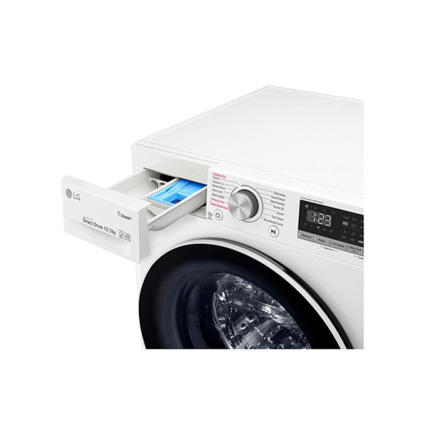 لباسشویی ال جی دوام و طول عمر چندین ساله را به همراه دارد. چرا که بدنه از جنس استیل ضد خش تهیه کرده اند. این جنس می تواند مقاومت و استحکام قابل توجهی را در برابر انواع ضربه ها به وجود بیاورد. اما باید به این نکته اشاره کرد که وزن مناسبی را هم برای جا به جایی و حمل به وجود آورده است. ماشین لباسشویی ال جی 10.5 کیلو V5 رنگ سفید مدل F4V5RGPOW بر روی بدنه ی خود در قسمت بالایی صفحه نمایش دارد. صفحه نمایش دیجیتالی می تواند تمامی تنظیمات و عملکرد کالا را به کاربر نشان دهد. پنل هم در این قسمت وجود دارد که کار خاموش و روشن کردن و … را انجام می دهد. اهرم چرخشی موجود جهت انتخاب کردن نوع برنامه ی شست و شو تعیین شده است. دور تا دور این اهرم برنامه ها حکامی شده اند. تنها با چرخش می توان انتخاب خود را انجام داد.