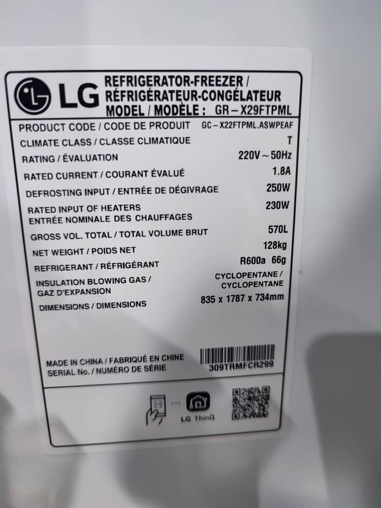 یخچال ال جی مدل X29 دارای ظرفیت 30 فوت و 423 لیتر است و ارتفاع آن 1787 میلی متر است و پهنای آن 734 میلی متر است. برای خانواد هایی با جمعیت بالا مناسب است و درخشندگی را در آشپزخانه شما به ارمغان میآورد. میتوانید دمای یخچال و فریزر را به دلخواه تنظیم کنید. همچنین دارای 5 درب است که کاملاً جا دار طراحی شده است. 2 درب یخچال و 2 درب فریزر است که به صورت ایدهآل فضای مناسبی را به شما هدیه میدهد و قابلیت هشدار باز ماندن درب را دارد. همچنین دارای 5 طبقه است که نوشیدنی ها را میتوانید داخل آن بگذارید و 2 کشو برای سبزی و میوه جات طراحی شده است. بخش فریزر آن 4 طبقه است که میتوانید گوشت و مواد غذایی مورد نیاز را در آن قرار دهید.