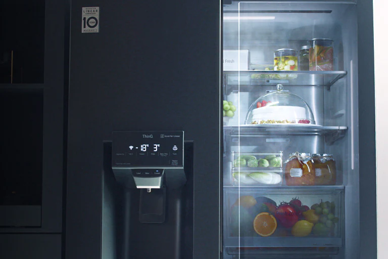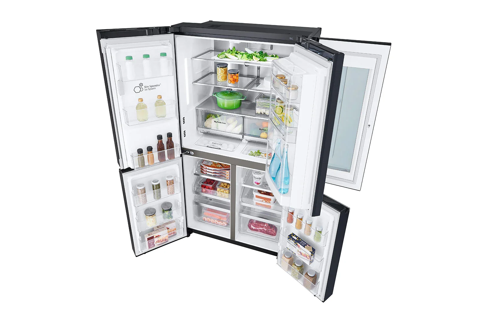 با پنجره شیشه ای منحصر به فرد یخچال ال جی x945 می توانید بدون نیاز به باز کردن درب، داخل یخچال خود را ببینید. تنها کاری که باید انجام دهید این است که دو بار به پنل ضربه بزنید تا محتویات یخچال شما آشکار شود. دو ضربه روی صفحه شیشه ای زیبا کافی است تا به سرعت و به راحتی تنقلات و نوشیدنی های مورد نظر خود را بدون نیاز به باز کردن درب پیدا کنید، به این معنی که سرمای کمتری هدر می رود و غذا برای مدت طولانی تری تازه می ماند. دو بار به در شیشه ای آن ضربه بزنید و فضای داخلی روشن می شود. Instaview به شما این امکان را می دهد که بدون نیاز به باز کردن درب یخچال، محتویات یخچال را بررسی کنید و در نتیجه از دست دادن هوای سرد را محدود کنید.