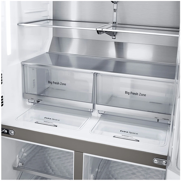 تضمین تازگی محصولات ، حفظ دمای مناسب در یخچال است. دستگاه های مجهز به عملکرد Multi Airflow هوای خنک را در داخل یخچال به طور مساوی توزیع می کنند و از دمای مناسب در هر گوشه اطمینان می دهند. یخچال ال جی x945 چند دری مجهز به تهویه سرد است. این سیستم هوای سرد و خشک تولید می کند که به طور مداوم در دستگاه گردش می کند. این یخ زدگی کامل را تضمین می کند ، تعمیر و نگهداری را تسهیل می کند ، دمای یکنواخت را در سرتاسر دستگاه فراهم می کند و به شما امکان می دهد هر غذایی را در هر قفسه ای ذخیره کنید. به لطف عملکرد پرده هوای سرد یخچال به سرعت و به طور یکنواخت از جلو تا پشت یخچال خنک می شود.