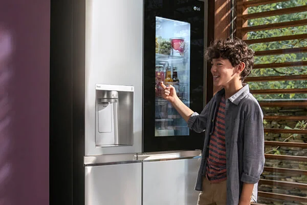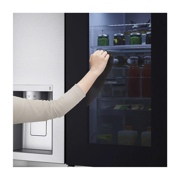 به لطف پنل InstaView™ ThinQ™، در یخچال فریزر ال جی XV90 ساید بای ساید اینستاویو 2022 نیازی به باز کردن درب ندارید تا ببینید چه چیزی داخل آن است. فقط دو بار ضربه بزنید و روشن می شود و شفاف می شود تا بتوانید داخل یخچال را ببینید. نه تنها می توانید به سرعت متوجه شوید که چه چیزی کم شده اید ، بلکه می توانید بدون از دست دادن هوای سرد یخچال این کار را انجام دهید و به تازگی مواد غذایی کمک کنید. ویژگی InstaView ما یک صفحه شیشهای شیک است که با دو ضربه سریع روشن می شود ، با InstaView ThinQ ، پنل شیشه ای 23% بزرگتر می شود و به شما امکان می دهد بیشتر غذاها و نوشیدنی های خود را در داخل ببینید. با پنجره شیشه ای منحصر به فرد ال جی ، می توانید بدون نیاز به باز کردن درب، داخل یخچال خود را ببینید. تنها کاری که باید انجام دهید این است که دو بار به پانل ضربه بزنید تا محتویات یخچال شما آشکار شود.