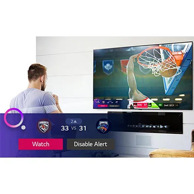 صحنه ای که یک بازی مسابقه ای را روی صفحه تلویزیون نشان می دهد. نمای نزدیک بازیکنی که در حال انجام بازی مسابقه ای روی صفحه تلویزیون است و نیز در تلویزیون 43 اینچ ال جی نانو سل 2021 اسمارت 4K مدل 43NANO75 با بالاترین استاندارد بازی کنید. بر حریفان پیروز شوید. ALLM دارای آخرین مشخصات HDMI 2.1 است تا محتوای سریع را در وضوح بالاتر و گرافیک صاف و همزمان هماهنگ کند. تلویزیون ال جی نانو سل تجربه ای هیجان انگیز از روز مسابقه را ارائه می دهد. صدای فراگیر بلوتوث فضای کامل ورزشگاه را به خانه شما می آورد ، در حالی که هشدارهای ورزشی شما را از آخرین اخبار تیم های مورد علاقه خود مطلع می کند.