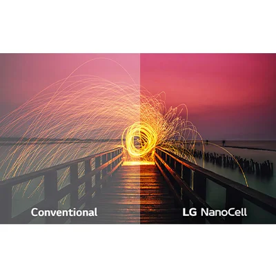 در تلویزیون 50 اینچ ال جی نانو سل 2021 اسمارت NANO75 رنگ خالص به رنگهایی اشاره دارد که توسط فناوری تلویزیون نانوسل ال جی تصفیه شده اند. تلویزیون نانو ال جی از نانوذرات ، فناوری متمایز خود نانو ، برای فیلتر و تصفیه رنگ استفاده می کند و ناخالصی ها را از طول موج RGB حذف می کند. این بدان معناست که فقط رنگهای خالص و دقیق روی صفحه نمایش داده می شوند. نتیجه تصویری پر جنب و جوش تر و واقعی تر است که محتوای شما را زنده می کند. رنگهای ناخالص همانطور که در تلویزیونهای معمولی در بالا مشاهده می شود و از فیلترهای نانوسل عبور می کنند تا رنگهای خالص در قسمت پایین ایجاد شود . معمولی به تلویزیون های UHD ال جی بدون فناوری نانوسل اشاره دارد. رنگ مطلق تلویزیون نانوسل تضمین می کند که رنگها برای یک تصویر واقعی حتی با زاویه وسیع مشاهده می شوند. صفحه تلویزیون که منظره ای باشکوه را به تصویر می کشد که از زوایای مختلف با دقت نمایش داده می شود. سه تلویزیون طراحی گالری با یک غرفه که در هر مکان به عنوان آثار هنری کار می کنند. آثار هنری زیبا دیگر فقط برای دیوارها نیستند. غرفه گالری به شما این آزادی را می دهد که تلویزیون خود را در فضای باز قرار دهید و خانه خود را به گالری تبدیل کنید.