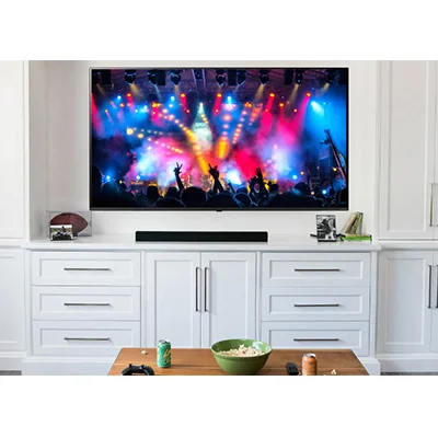 صحنه ای که یک بازی مسابقه ای را روی صفحه تلویزیون نشان می دهد. نمای نزدیک بازیکنی که در حال انجام بازی مسابقه ای روی صفحه تلویزیون است و نیز در تلویزیون 50 اینچ ال جی نانو سل 2021 اسمارت 4K مدل 50NANO75 با بالاترین استاندارد بازی کنید. بر حریفان پیروز شوید. ALLM دارای آخرین مشخصات HDMI 2.1 است تا محتوای سریع را در وضوح بالاتر و گرافیک صاف و همزمان هماهنگ کند. تلویزیون ال جی نانو سل تجربه ای هیجان انگیز از روز مسابقه را ارائه می دهد. صدای فراگیر بلوتوث فضای کامل ورزشگاه را به خانه شما می آورد ، در حالی که هشدارهای ورزشی شما را از آخرین اخبار تیم های مورد علاقه خود مطلع می کند. صفحه تلویزیون نشان می دهد که یک بازیکن فوتبال در حال زدن پنالتی است . یک زن و مرد در حالیکه به ورزش هشدار داده می شود عینک را روی صفحه تلویزیون می زنند. Sports Alert قبل ، در حین و بعد از بازی به شما اطلاع می دهد. شما هرگز نگران از دست دادن بازی های بزرگ تیم های مورد علاقه خود نخواهید بود ، حتی وقتی محتوای دیگری را تماشا می کنید. میزان استفاده ممکن است برحسب کشور متفاوت باشد. خانواده ای که روی نیمکت نشسته اند و در تلویزیون فوتبال تماشا می کنند. به آسانی بلندگوهای بلوتوث را برای تجربه صدای فراگیر بی سیم واقعی متصل کنید. همه عملکردها غنی تر و واقعی تر به نظر می رسند و فضای بازی بزرگ را به اتاق نشیمن شما می آورند.