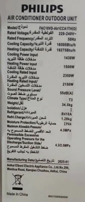 این کولر گازی ظرفیت 18000 دارد و از فناوری اینورتر بهره مند است. محصول سال ۲۰۲۵ شرکت فیلیپس میباشد و رده انرژی A دارد. از کمپرسور تروپیکال T3 برخوردار بوده و در برابر گرما تا ۶۰ درجه مقاومت بالایی دارا است. یکی دیگر از خصوصیات عالی که این کولر گازی دارد کنترل آمپر ۵ حالته میباشد. فیلتر تصفیه هوا با قابلیت شستشو در آن استفاده شده است. از رادیاتور طلایی دو لایه مسی سهیم بوده و برد اینورتر خنک کننده بر ویژگی های آن افزوده است.