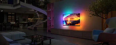 تلویزیون فیلیپس Philips 65OLED910 دارای ویژگی منحصر به فردی است و آن داشتن قابلیت آمبیلایت Ambilight میباشد. با وجود این ویژگی که به صورت چهار طرفه نیز بوده نوری عالی را در اطراف نمایشگر تلویزیون ایجاد میکند. در بخش لبه های پشتی تلویزیون، LEDهایی نصب شده اند و در بالا، پایین، چپ و راست موجود هستند. این چراغ ها نوری از خود میتابانند که هم رنگ با محتوای در حال پخش از نمایشگر تلویزیون است. این نور به دیوار پشتی تلویزیون تابیده شده و هم جنیه زیبایی دارد و هم تصویر را بزرگتر از حد واقعی اش که فراتر از نمایشگر رفته است نمایش میدهد. به مخاطب حس غوطه ور شدن در تصویر را خواهد داد. علاوه بر آن از خستگی چشم نیز جلوگیری میکند و در زمان های طولانی که به تماشای برنامه ها و فیلم های سینمایی نشسته اید چشمتان خسته نمیشود. قابلیت تنظیم شدن دارد و میتوانید نور و شدت آن را تنظیم کنید. از حالت های مختلف بهره مند میباشد.