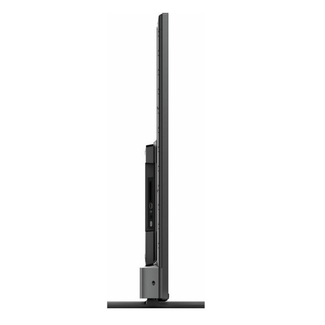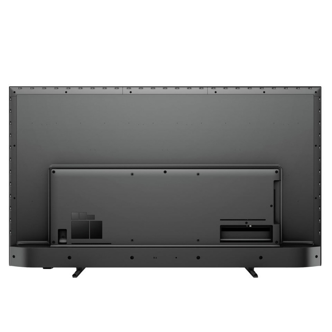 بی شک طراحی و شکل ظاهری یک تلویزیون می تواند مهم ترین گزینه باشد. یکی از ویژگی های ظاهری این تلویزیون که آن را از سایر تلویزیون های دیگر متمایز می کند، قابلیت ambilight می باشد. این قابلیت سبب می شود که در چراغ های رنگی ال ای دی اطراف لبه تلویزیون قرار گرفته شوند که رنگ ها کاملاً هماهنگ با رنگهای نمایش روی صفحه یا موسیقی تغییر میکنند. این قابلیت لذت تماشای تلویزیون را دو چندان می کند و جذابیت زیادی را به محتوای در حال پخش می بخشد. این تلویزیون فیلیپس دارای سایز 75 اینچ می باشد که برای مکان ها و اتاق های بزرگ مثل هتل ها و مطب های بزرگ گزینه مناسب باشد. در اولین نگاه شما می توانید متوجه قاب باریک این تلویزیون شوید. این قاب به قدری باریک است که می توان تلویزیون را جز تلویزیون های بدون فریم عنوان کرد. این قاب باریک مشکی رنگ که دور تلویزیون را فرا گرفته است جلوه ای زیبا و مدرنی را برای تلویزیون ایجاد خواهد کرد و تلویزیون را همچون قابی زیبا در بر گرفته است. نوع پایه های تلویزیون یکی از ویژگی هایی است که نقش مهمی در زیبایی یک تلویزیون دارد. پایه های این تلویزیون فیلیپس مدل PUS8007 از نوع دو طرفه ای می باشد که در اطراف تلویزیون قرار می گیرد و حالت تختی دارند. این نوع پایه مورد پسند افراد مشکل پسند می باشد زیرا این مدل پایه بسیار مدرن و شیک است. همچنین دارای استحکام بالایی هستند که جلوه ای زیبا به تلویزیون می بخشد. البته شما می توانید تلویزیون را به وسیله براکت های مناسب بر روی دیوار نصب کنید که اینکار سبب میشود محیط مدنظر شما مرتب تر جلوه کند. در رابطه با قسمت پشتی تلویزیون باید گفت که نسبتا ساده طراحی شده است. قسمت پشتی تلویزیون متشول از دو قسمت می باشد که قسمت بالایی باریک می باشد و قسمت پایینی کمی ضخیم تر است و محل قرار گرفتن درگاه های ارتباطی می باشد. درگاه های ارتباطی در قسمت راست تلویزیون تعبیه شده است و به راحتی می توانید به انها دسترسی داشته باشید. رنگ بدنه این تلویزیون مشکی می باشد و روی آن چند دکمه کوچک قرار گرفته است که در تصویر پایین می توانید جزئیات آن را مشاهده کنید. ضخامت تلویزیون هم همانطور که اشاره کردیم متشکل از دو قسمت می باشد که قسمت بالای باریک می باشد و قسمت پایینی کمی ضخیم تر می باشد.