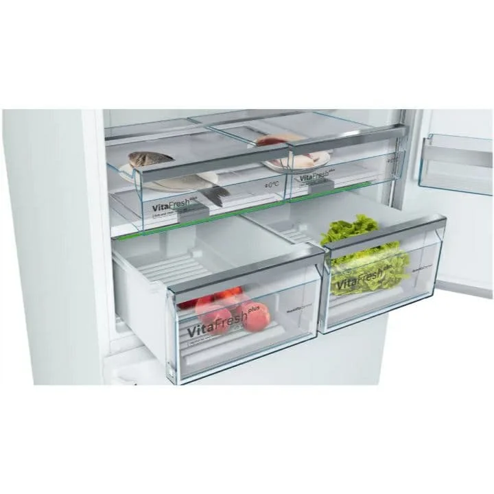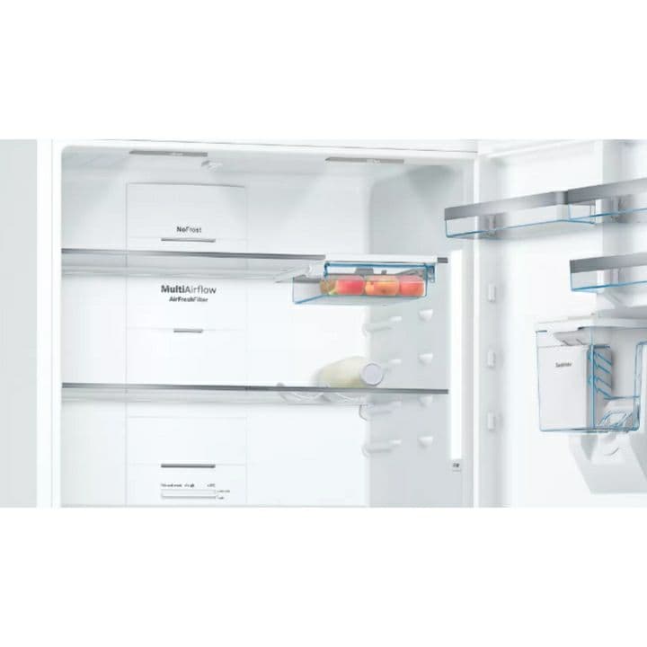 یکی از قابلیت های این یخچال قابلیت حذف قفسه یا کشو در فریزر می باشد تا بتوانید آن فضا را برای محصولی دیگر استفاده کنید. یا استفاده از این یخچال دیگر نیازی به برفک زدایی نمی باشد زیرا بدون برفک می باشد. این یخچال دارای سیستم هوای چندگانه Multi Air flow می باشد. در واقع این قابلیت سبب می شود تا هوای داخل یخچال همواره به صورت یکنواخت خنک باشد که سبب تازه تر ماندن مواد غذایی خواهند شد. این یخچال بالا پایین بوش مجهز به چراغ ال ای دی LED می باشد. به این معنی زمانی که شما درب یخچال و فریزر را باز کردید فضای داخلی یخچال را به خوبی مشاهده خواهید کرد و هیچ گونه اقلامی از شما گم نمی شود. همچنین لامپ led این یخچال بسیار کم مصرف می باشد. همچنین داخل قفسه یخچال قفسه وجود دارد که می توانید بطری ها را به صورت خوابیده روی ان قرار دهید و همچنین کشو های این فریزر از نوع شفاف می باشد و می توانید محتوای داخل آن را مشاهده کنید.
