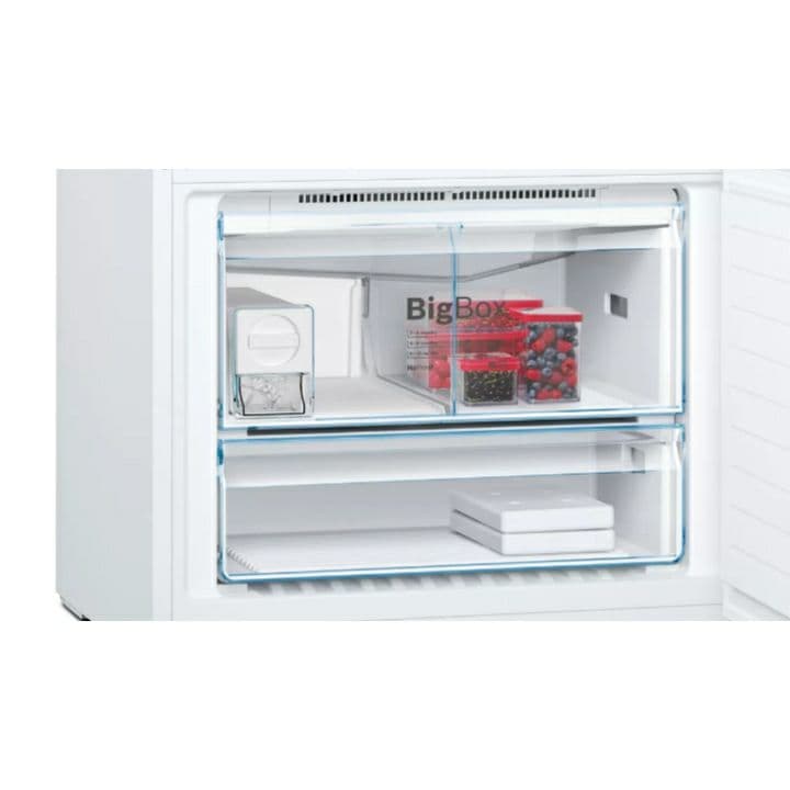 ظرفیت این یخچال بالاپایین بوش 30 فوت می باشد. در واقع این ظرفیت 30 فوت برابر با 619 لیتر می باشد که از ان 479 لیتر متعلق به یخچال و 140 لیتر متعلق به فریزر می باشد. در واقع این ظرفیت 30 فوت برای خانواده های پرجمعیت می تواند گزینه ای بسیار مناسب باشد. قسمت یخچال این دستگاه متشکل از 3 طبقه، 4 کشو و 3 طبقه در درب ان می باشد. همچنین در قسمت فریزر دارای 2 کشو می باشد. قفسه های این یخچال از شیشه حرارت دیده می باشند که فوق العاده محکم هستند و با اسودگی و بدون هیچ نگرانی می توانید مواد غذایی با هر حجم و وزنی را روی ان قرار دهید. قسمت فریزر دارای قفسه BigBox می باشد. در واقع این قفسه همانطور که از اسمش پیداست می توانید مواد غذایی که اندازه بزرگی دارند همچون کیک، کدو تنبل و دیگر مواد غذایی با ابعاد بزرگ را داخل ان بگذارید. قفسه های این یخچال از قابلیت تنظیم ارتفاع نیز برخوردار می باشند. درون یخچال قفسه ای کوچک نیز وجود دارد که در اخل آن می توانید مواد غذایی کوچکی را قرار دهید و همچنین قفسه تخم مرغ نیز برای این یخچال KGD86AI304 طراحی شده است که با ان دیگر نگرانی بابت شکستن تخم مرغ ها نخواهید داشت.