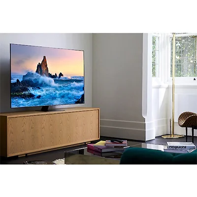 تلویزیون اسمارت سامسونگ دارای طراحی ظریف و جذابی است که حاشیه ای بسیار باریک و جذابی را دارا است که زیبایی تلویزیون را بیشتر کرده است. در پشت این تلویزیون فریم مشکی قرار گرفته و پورت و درگاه های ورودی روی آن قرار گرفته اند. این تلویزیون 55Q80T سامسونگ دارای نمایشگری بزرگ است که دید گسترده ای را نیز دارد که برای نشیمن های بزرگ بسیار مناسب است.