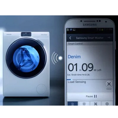 کنترل هوشمند به شما امکان می دهد ماشین لباسشویی سامسونگ خود را از راه دور با استفاده از یک برنامه در تلفن هوشمند خود کنترل و کنترل کنید. از هرجای داخل یا خارج از خانه که شبکه بی سیم وجود دارد ، می توانید فوراً آن را شروع یا مکث کنید و مراقب انتخاب چرخه ، زمان باقی مانده و اتمام هشدارها پس از اتمام چرخه باشید. شبکه بی سیم مورد نیاز است. برای گوشی های iPhone و دستگاه های Android موجود است. همچنین فناوری اکو چک به شما امکان می دهد میزان مصرف برق و آب را در هر شستشو مدیریت کنید. قبل از شروع یک برنامه ، می توانید پیش بینی مصرف انرژی و آب مورد انتظار را درخواست کنید ، بنابراین می توانید کارآمدترین و سازگار با محیط زیست را انتخاب کنید. سرانجام ، در حالی که بیرون هستید و یا حتی فقط در یک اتاق دیگر هستید ، می توانید از راه دور از طریق یک برنامه تلفن هوشمند دستگاه را کنترل و کنترل کنید به عنوان مثال ، می توانید بلافاصله یک چرخه را شروع یا مکث کنید ، یا هنگام شستشو اعلانی دریافت کنید کامل است.