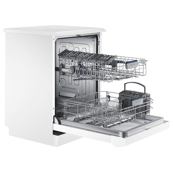 ماشین ظرفشویی سامسونگ DW60H5050FW از محصولات زیبا و با دوام شرکت سامسونگ می باشد. که با رنگ نقرهای تولید شده است. این مدل ظرفشویی به دلیل ظرفیت بالای 14 نفره ای که دارد به آسانی حجم زیادی از ظروف کثیف را در داخل خود جای می دهد. سری جدید ظرفشویی سامسونگ محصول سال 2019 این شرکت معرفی شد . یک محصول انقلابی با بهره گیری از سیستم water wallکه هر ظرف را جداگانه و در هر قسمت ظرفشویی که قرار داده شده باشد ، پاک می کند . این سیستم شامل یک جریان آب پر فشار می باشد که در هر قسمت از دستگاه به آسانی باعث تمیزی بیشتر و سریعتر ظروف می شود . ماشین ظرفشویی سامسونگ مدل 5050 یکی از خوش طرح ترین و مدرن ترین محصولات مقرون به صرفهای میباشد که سامسونگ این بار نیز آن را به صورت بسیار زیبایی تولید کرده است. برنامه شستشوی بهداشتی یکی از برنامه های جالب و کارآمد این محصول است که ظروف را ضدعفونی کرده و هیچ اثری از لکه ها روی آن ها باقی نمی گذارد این برنامه در شستشوی ظروف نوزادان و سالمندان که سیستم ایمنی ضعیفی دارند اهمیت بیشتری دارد.برنامه شستشوی سریع، ظروف را طی 60 دقیقه می شوید بدون آن که چیزی از کیفیت شستشو کم شده باشد.برنامه شستشوی خودکار شاید بتوان گفت نوعی هوش مصنوعی است که در این ظرفشویی وجود دارد. این برنامه از طریق یک سری سنسور کدورت سنج میزان پارتیکل های غذایی روی ظروف را تشخیص داده و متناسب با آنها زمان شستشو و میزان آب مصرفی را تنظیم می کند و از این رو میزان مصرف آب و انرژی را به حداقل می رساند. سود بردن از ظرفیت بالای ۱۴ نفره این دستگاه کار شستشوی خانوادههای پر جمعیت را نیز بسیار راحت میکند. در نظر گرفتن برنامهها و امکانات عالی این ظرفشویی از یک طرف و همچنین توجه به طراحی شیک و زیبای آن از طرف دیگر این دستگاه را به وسیلهای کاملاً حرفهای و صد البته جذاب پیش چشم کاربر تبدیل کرده است. یکی از محصولات بادوام و با کیفیت برند معروف سامسونگ، ظرفشویی 14 نفره مدل DW60H5050FW می باشد. ماشین ظرفشویی سامسونگ DW60H5050FW از 6 برنامه شستشو بهره گرفته که شامل INTENSIVE- AUTO WASH-ECONOMY- EXPRESS- DELICATE- QUICK WASH- PRE WASH است. این ماشین ظرفشویی با مجهز بودن به شستشوی بهداشتی در دمای 70 درجه سانتیگراد باکتری ها را از روی ظروف از بین برده و آنها را ضدعفونی میکند.