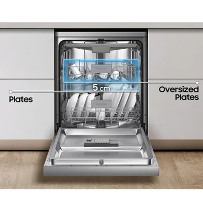 گزینه Half Load روی این ماشین ظرفشویی W60M6050FW سامسونگ به این معنی است که برای تمیز کردن ظروف دیگر لازم نیست صبر کنید تا دستگاه پر شود. با افزودن انعطاف پذیری به برنامه شستشوی خود ، می توانید قفسه بالا یا پایین یا حتی هر دو را با هم بارگذاری کنید. همه اینها بدون نگرانی در مورد اتلاف آب یا انرژی است. این دستگاه هوشمند از سنسورها برای تشخیص تعداد ظرف در داخل استفاده می کند و میزان صحیح آب را برای استفاده درست می کند و نیز در هزینه های آب و برق صرفه جویی می کنید. و اما سبد بالایی قابل تنظیم ارتفاع است و با داشتن فضایی بزرگ تر می توان شستشوی کامل تری را داشت. سبد بالایی قابل تنظیم ارتفاع روی این ماشین ظرفشویی به شما کمک می کند تا از فضا بیشترین بهره را ببرید. با حرکت دادن سبد به بالا یا پایین ، می توانید فضای بیشتری برای آن قابلمه ها و قابلمه های بزرگتر و بلندتر ایجاد کنید. این نه تنها باعث می شود که ناامیدی ناشی از گرفتگی همه چیز در یک بار شستشو از بین برود ، بلکه شستشوی دقیق و یکنواختی برای همه وسایل شما نیز تضمین می شود.