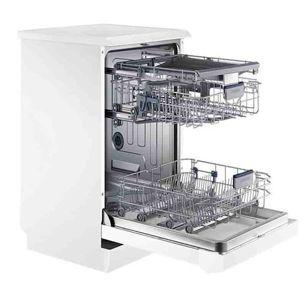 نیز درباره این محصول می توان بهترین تعریف را از آن کرد که به طور فوق العاده ای کار خود را با سر و صدایی کم انجام می دهد. اگر به نظر می رسد که شستشوی شما هرگز پایان ندارد ، این ماشین ظرفشویی سفید سامسونگ ایده آل است. با وجود فضای مناسب برای 14 مکان تنظیمات ، می توانید تمام ظرف های مهمانی شام را با یک بار شستن بشویید. یک قفسه سوم انعطاف پذیر برای ذخیره سازی کارد و چنگال و ظروف وجود دارد ، بنابراین می توانید موارد بیشتری را در زیر بارگیری کنید. به علاوه ، 7 برنامه شستشو و انرژی E برای شما به ارمغان می آورد. همچنین فضای داخلی این ماشین ظرفشویی با ظرفیت 14 مکان مناسب ، فضای کافی برای شستن ظروف ، لیوان ها و کارد و چنگال را برای تمام افراد در اختیار شما قرار می دهد. پارچه های انعطاف پذیر و رک ها همچنین استفاده از فضا را بسیار آسان می کنند ، بنابراین می توانید همه چیز را یک باره بشویید در حالی که تنظیم ارتفاع قفسه بالایی به شما امکان می دهد فضای بیشتری برای بشقاب و ظرف های بزرگتر داشته باشید. بعضی اوقات می توانید به سختی تلاش کنید تا همه چیز را در ماشین ظرفشویی W60M6050FW خود جا دهید ، مخصوصاً وقتی یک وعده غذایی بزرگ خانوادگی پخته اید. این ماشین ظرفشویی سامسونگ دارای یک رک انعطاف پذیر 3 است که فضای بالایی را برای قرار دادن کارد و چنگال و ظروف برای تمیز کردن کامل در بالا فراهم می کند. نهایت انعطاف پذیری را در شستن ظرف های خود تجربه کنید. متناسب با انواع بارها ، از بین برنامه های Daily 55 Cycle ، Intensive ، Eco ، Delicate ، Auto و Quick و Self Clean یکی از مهمانی های شام را انتخاب کنید.