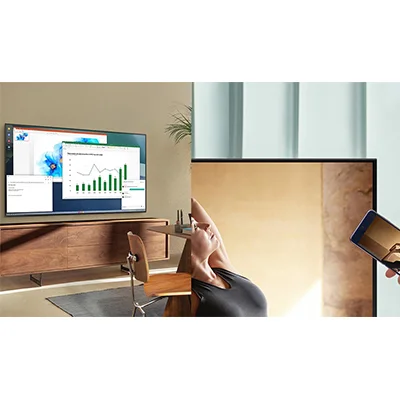 تلویزیون 43 اینچ سامسونگ با طراحی بسیار زیبا و منحصر به فردی ساخته شده است که در منزل یا اتاق نشیمن کاربران را به خود جلب می کند. طراحی این تلویزیون 4K به صورتی است که بدون حاشیه می باشد که تلویزیون را بسیار جذاب جلوه می دهد همچنین با پایه های بسیار خوش تراش و زیبا که به صورت پهن و یک پارچه طراحی شده است و در وسط تلویزیون قرار گرفته است که زیبایی خاصی را به تلویزیون بخشیده است. در پشت تلویزیون یک فریم مشکی که کل تلویزیون را پوشانده است و در گوشه ی آن درگاه ها و ورودی های تلویزیون که به صورت بسیار زیبایی طراحی شده است و دسترسی به آن ها بسیار آسان می باشد. این تلویزیون با نمایشگر 43 اینچی که دارد برای فضا های بزرگ بسیار مناسب و چشم گیر است. این تلویزیون دارای اینچ و سایز های متفاوتی است که می توانید آن ها را در سایت ما مشاهده نمایید.