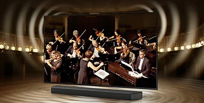 با صدای فراگیر غرق در صدای سه بعدی که در هر صحنه حرکت را ردیابی می کند و شما را در مرکز عمل قرار می دهد. Q -Symphony Technology - عالی با صدای عالی ، یکپارچه بین نوار صوتی و تلویزیون سامسونگ. فناوری Q-Symphony از بلندگوها و نوارهای صوتی تلویزیون استفاده می کند و نهایت فضای سرگرمی را ایجاد می کند و همه حواس را پوشش می دهد. دور خود را با صدای تلویزیون و نوار صوتی هماهنگ کنید. Q Symphony به طور منحصر به فرد اجازه می دهد بلندگوهای تلویزیون و نوار صوت به طور همزمان برای جلوه بهتر بهتر بدون خاموش کردن بلندگوهای تلویزیون کار کنند. این تلویزیون 43 اینچ سامسونگ دارای سیستم صوتی 2 کاناله میباشد که از هر کدام از کانالها صدایی با قدرت 10 وات انتشار پیدا خواهد کرد و با ترکیب شدن صدای خروجی این دو اسپیکر توان صوتی تلویزیون برابر 20 وات خواهد شد بنابراین میتوانید صوتی واضح و دقیق را دریافت کنید. صدا در این تلویزیون 20 وات است. اسپیکر های این تلویزیون در قسمت پایین قرار گرفته و چون روبه پایین می باشند صدای Down Firing را دارند. سامسونگ در آن از ویژگی Q-Symphony استفاده کرده است. این ویژگی بسیار کاربردی است. قابلیت Multiroom Link نیز امکان اتصال تلویزیون به سایر دستگاههای صوتی را از طریق Wi-Fi فراهم میکند. به این ترتیب میتوانید صدای تلویزیون و سایر سیستمهای صوتی را باهم ادغام کرده و صدایی باکیفیتتر داشته باشید. همچنین تلویزیون 43AU8000 سامسونگ دارای همچنین دارای قابلیت Dialog Enhancement برای تقویت گفتگو می باشد این ویژگی صوتی برجسته سبب بهبود صداها و افزایش کیفیت مکالمات می شود تا شما قادر باشید گفتگو ها را با جزییات بهتر و دقیق تر درک کنید. در مجموع صدای تلویزیون AU8000 عالی بوده و صداها را در کیفیت واقعی خود پخش میکند.