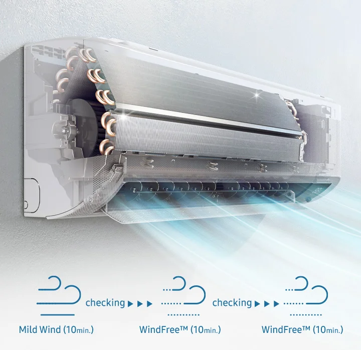 دمای خانه خود را در هر زمان و هر مکان کنترل کنید. با استفاده از برنامه SmartThings* می توانید از راه دور کولر گازی را تنها با یک لمس کنترل و نظارت کنید. یا به سادگی به سیستم هوش مصنوعی (AI) بگویید چه می خواهید ** و آن را انجام می دهد. حتی بهترین تنظیمات را پیشنهاد می کند. هوا را بهداشتی نگه دارید و عملکرد مبدل حرارتی را با یک فیلتر Tri-Care حفظ کنید. 3 لایه آن شامل یک فیلتر با چگالی بالا است که ذرات بزرگ گرد و غبار ، الیاف و موهای حیوانات را استخراج می کند. فیلتر پوشش زئولیت همچنین گرد و غبار ریز را جذب می کند و ویروس ها ، باکتری ها و آلرژن ها را از بین می برد. داخل کولر گازی خود را با هیچ کاری بهداشتی نگه دارید! پس از کار کردن، عملکرد خودکار تمیز کردن به طور خودکار مبدل حرارتی را با استفاده از یک فرآیند 3 مرحلهای خشک میکند. با دمیدن هوا بین 10 تا 30 دقیقه رطوبت را از بین می برد. بنابراین از تجمع باکتری ها و بوها جلوگیری می کند.