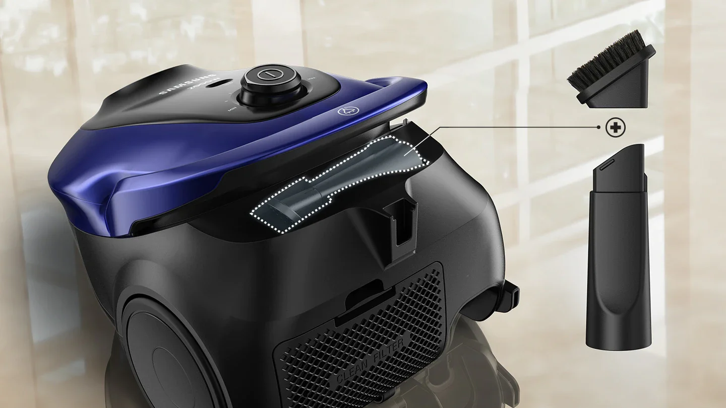 آیا دوست دارید یک جاروبرقی قدرتمند داشته باشید که به راحتی در خانه حرکت کنید؟ تمام این الزامات توسط جاروبرقی سبک و قابل مانور سامسونگ VC2500 با کیسه گرد و غبار برآورده می شود. قدرت مکش بالا برای تمیز کردن کامل فرش و سطوح سخت. دستگیره Easy Grip* ارگونومیک و بدون لغزش برای استفاده آسان و راحت. طراحی هوشمندانه چرخان از پیچ خوردن شلنگ جلوگیری می کند. اکنون می توانید بدون تلاش اضافی جاروبرقی بکشید. یک لوازم جانبی 2 در 1 به راحتی در زیر دسته روی بدنه قرار دارد. زمانی که می خواهید مبلمان را تمیز کنید یا وارد مکان های تنگ و صعب العبور شوید ، بیرون آوردن و استفاده از آن راحت است. با فیلتراسیون آلرژن پیشرفته ، فضای خانه شما به حداقل گرد و غبار و مواد حساسیت زا حفظ می شود. در صورت نصب نشدن گرد و غبار، قفل مخصوص به شما اجازه نمی دهد درب را ببندید. شیلنگ را می توان 360 درجه چرخاند تا در هنگام حرکت پیچ نخورد. در هر جهتی به راحتی و بدون زحمت حرکت کنید. چرخهای لاستیکی بزرگ به شما این امکان را میدهند که جاروبرقی را در اطراف خانه حرکت دهید بدون اینکه کف زمین خراشیده شود. به لطف عملکرد، شلنگ باز می شود و برای تمیز کردن در غیر قابل دسترس ترین مکان ها مرتب می شود. محفظه لوازم جانبی داخلی با دکمه دسترسی سریع به شما امکان می دهد لوازم جانبی را بدون نگرانی از گم شدن آنها ذخیره کنید. به لطف هولدر مخصوص طراحی شده، می توانید بسته به نیاز خود جاروبرقی را پس از تمیز کردن در دو حالت نگهداری کنید. این دکمه به گونه ای طراحی شده است که روشن / خاموش کردن جاروبرقی و همچنین تنظیم برق را آسان می کند.
