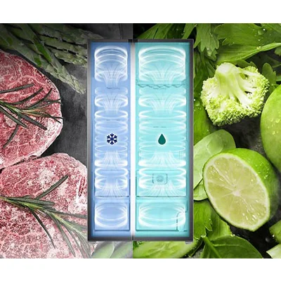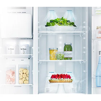 پیشرفته ترین ریزپردازنده Adaptive Intelligence و سیستم پیشرفته چند حسگر پیشرفته آن طراوت و ماندگاری طولانی مدت را برای مواد غذایی شما تضمین می کند. سیستم قدرتمند به طور مداوم دما و رطوبت را حس می کند و بر این اساس سازگار می شود تا از نگهداری مواد غذایی برای مدت طولانی تری اطمینان حاصل کند. ابر چند یونی با عملکرد ضد باکتری ، 99.9 درصد remove و باکتری های مضر و بو را از بین می برد و از تازگی داخل و خارج اطمینان می بخشد. همچنین 99 رشد تا 99.9٪ از باکتریهای منتخب را کاهش می دهد. این فناوری برای سالم ماندن سبزیجات و میوه جات بسیار مناسب است زیرا مانع از کپک زدن و خراب شدن آن ها می شود. با استفاده از موتور قدرتمند آن که هوای خنک را در یخچال به حالت گردش در می آورد که باعث سالم ماندن مواد غذایی در یخچال می شود. نیز فناوری پیشرفته IntelliSense Invertor خنک کننده را با توجه به بار داخلی سازگار می کند. این نه تنها مصرف انرژی را کاهش می دهد ، بلکه عملکرد بی نظیر را حتی در هنگام قطع برق نیز تضمین می کند. در صورت قطعی برق ، به طور خودکار به اینورتر خانگی متصل می شود ، بنابراین خنک سازی مداوم ایجاد می کند و طراوت طولانی مدت را حفظ می کند. در نتیجه طراوت ، عطر و طعم و بافت غذا را برای مدت طولانی تری حفظ کنید. کولرهای مستقل در هر محفظه به طور مساوی هر گوشه ای را خنک می کنند. عایق پیشرفته ، بدون توجه به گرم یا سرد بودن بیرون ، هر نوسانی را کاهش می دهد. فناوری دیجیتال اینورتر همچنین دما را دقیقاً حس و کنترل می کند.