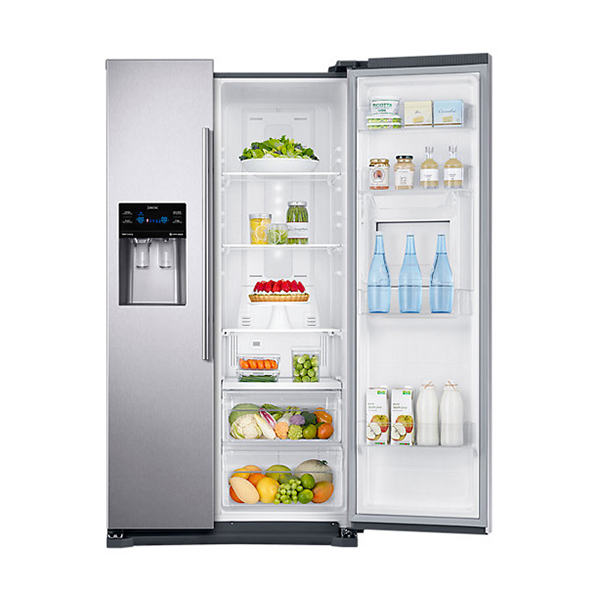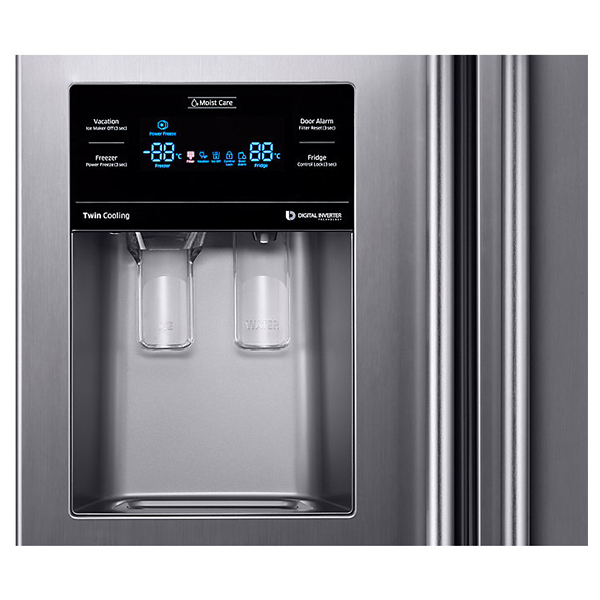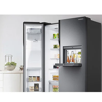 در این یخچال ساید بای ساید سامسونگ هوم بار طراحی شده است که از زیاد باز و بسته شدن در یخچال جلوگیری می کند. ما روزانه مقدار زیادی آب خنک می نوشیم که می توان از هوم بار این یخچال بهره برد که آب یا هر گونه نوشیدنی و خوراکی را داخل آن قرار داد و از باز و بسته کردن در یخچال جلو گیری کرد و اما با داشتن آبسرد کن در این یخچال که بر روی در فریزر آن طراحی شده است آب و یخ آن به صورت خودکار پر می شود. همچنین می توان از طریق صفحه نمایش آن ریز و درشتی یخ را انتخاب کرد و نیز درجه ی سردی آب را نیز مشخص کرد که بسیار کاربردی و عالی است. و اما جذاب ترین فناوری آن اسمارت بودن این یخچال است که یخچال خود را در هر زمان و هر مکان کنترل کنید. Wi-Fi آماده است ، بنابراین با استفاده از Smart Dongle اختیاری و برنامه SmartThings می توانید از راه دور کارهایی را که انجام می دهد بررسی کنید. می توانید حالت های خنک کننده سریع آن را کنترل کنید ، دما را کنترل کنید و در صورت باز ماندن درب ، هشدار دریافت کنید. حتی خطاها را تشخیص می دهد.