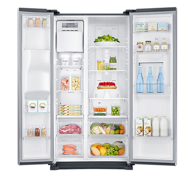 یخچال RS53 سامسونگ دارای طراحی بسیار زیبا و منحصر به فردی است که یخچال به صورت مستقل خود را در هر آشپزخانه ای جلوه می دهد. با ترکیب نوآوری و طراحی متمایز ، یخچال ساید بای ساید حتی زیبا ترین ساخت آشپزخانه را ارتقا می بخشد. صفحه شیشه ای براق و براق با دو ضربه سریع روشن می شود ، بنابراین شما می توانید داخل محفظه دسترسی آسان را بدون باز کردن درب مشاهده کنید ، از دست دادن هوای سرد را کاهش دهید تا به طراوت بیشتر غذا کمک کند. در این یخچال ساید بای ساید از قابلیت هوم بار و آبسرد کن بهره گرفته شده است. که طراحی بسیار زیبایی را دارد و همچنین کارایی یخچال را چند برابر کرده که بسیار فوق العاده عمل می کند. همچنین در این یخچال ساید بای ساید سامسونگ میله AUTO-GLOW با حسگر تقریبی وجود دارد که هنگام استفاده از یخچال در شب یا تاریکی مساعدتر است ، نوار منحصر به فرد خودکار درخشان با سنسور مجاورت ، حضور شما را تشخیص می دهد و به طور خودکار می درخشد تا منظره ای از دستگیره درب ارائه دهد.
