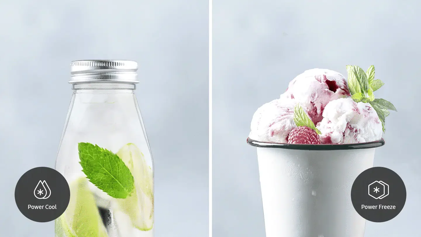 دوقلو سامسونگ به طور جداگانه هوای خنککننده یخچال و فریزر را کنترل و تولید میکند. جریان هوا بین این دو جدا می ماند تا هوای فریزر خشک تر بماند ، در حالی که سطح رطوبت یخچال 42٪ - تقریباً 5 برابر بیشتر از سیستم های خنک کننده منفرد باقی می ماند و در نتیجه میوه ها و سبزیجات تازه تر و طولانی تر می مانند. تولید و ذخیره سازی یخ برتر مهمانی های شما بزرگتر شده اند. یخچالهای سامسونگ مقادیر زیادی یخ تولید میکنند تا هرگز تمام نشوند. ذخیره یخ اضافی ما به شما کمک می کند همیشه یخ در دسترس داشته باشید. ویژگی Power Freeze و Power Cool دمای هر محفظه را در عرض چند دقیقه 10 درجه کاهش می دهد. برای خنک کردن موارد نوشابه یا سفت کردن بستنی در یک لحظه عالی است. جریان هوای فراگیر air Surround Air Flow گردش هوا را برای خنک شدن یکنواخت در سراسر یخچال تضمین می کند. خنککننده دوقلو غذاها را تازهتر نگه میدارد. از عملکرد خنک کننده سریع لذت ببرید. با فشار یک دکمه، Power Cool هوای سرد را به داخل یخچال می دمد تا به سرعت مواد غذایی یا نوشیدنی های مورد علاقه شما را خنک کند. Power Freeze هوای سرد را به سرعت به داخل فریزر منتقل می کند. برای انجماد یا سفت کردن مواد غذایی منجمد و تهیه یخ عالی است.