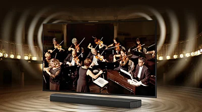 تولید صدا در تلویزیون های سامسونگ از اهمیت ویژه ای برخوردار است و این شرکت با استفاده از فناوری ای متعدد این تلویزیون را در ارائه صدایی بی نظیر قویتر نموده است. صدای تلویزیون سامسونگ Au7000 متوسط است و تقریبا نتیجه ای برابر با Tu7000 را از آن شاهد هستیم. این تلویزیون خروجی صدای قدرتمند و بلندی دارد اما شاید نه به اندازهی محیط های بسیار بزرگ و شلوغ و کاربر اهل صدا. این تلویزیون نیز سیستم صوتی ای که بیس ایدهآل و کوبش بخواد ایجاد کند ندارد و انتطاری از آن نداشته باشید، اما خوشبختانه وضوح و دقت صدای دیالوگ ها بسیار خوب پرداخته و پخش میشود. برای تجربهی صدای بهتر پیشنهاد میشه از ساندبار یا سیستم های صوتی مجزا استفاده کنید. سامسونگ از بهترین فناوریهای روز دنیا برای خلق تصاویری باکیفیت در تلویزیون 43AU7000 استفاده کرده است. البته کیفیت تصویر به تنهایی برای داشتن یک تلویزیون ایدهآل کافی نیست و لازمهی دیگر آن کیفیت صدای مناسب میباشد. این تلویزیون سامسونگ از کیفیت صدای فوق العادهای برخوردار است. سیستم بلندگوی 2 کاناله 20 وات به لطف فناوری Q Symphony صدای فوق العاده واضح و کاملی به تلویزیون AU7000 بخشیده است. این صدا به واسطه فناوری Q Symphony، قدرت بلندگوها در این تلویزیون، بالاتر رفته و امکان ایجاد صوت خارق العاده با همان توان 20 را به آن ها می دهد. با وجود این قابلیت ها است که شما می توانید از محتوای مهیج نمایشی خود از تلویزیون 43AU7000 سامسونگ، بیشتری از هر زمانی لذت حقیقی را ببرید. تقویت کنندهی Dialog Enhancement افزایش چند برابری میزان صدا را به همراه دارد. به عبارتی این قابلیت حجم صدای اصلی را بالا برده و با حذف نویزهای اضافی صدایی واضح و شفاف را ارائه میدهد. همچنین فناوری Dolby Digital Plus نقطه قوت این تلویزیون اسمارت میباشد. زیرا توسط آن صداها رمزگشایی میشود و به صورت فراگیر و با قدرت بالا در فضای اتاق انتشار داده خواهند شد این امر موجب میشود تا در میان صداها احاطه شوید و جزئیات ریز و دقیق صداها را بشنوید و نهایت لذت را از آن ببرید.