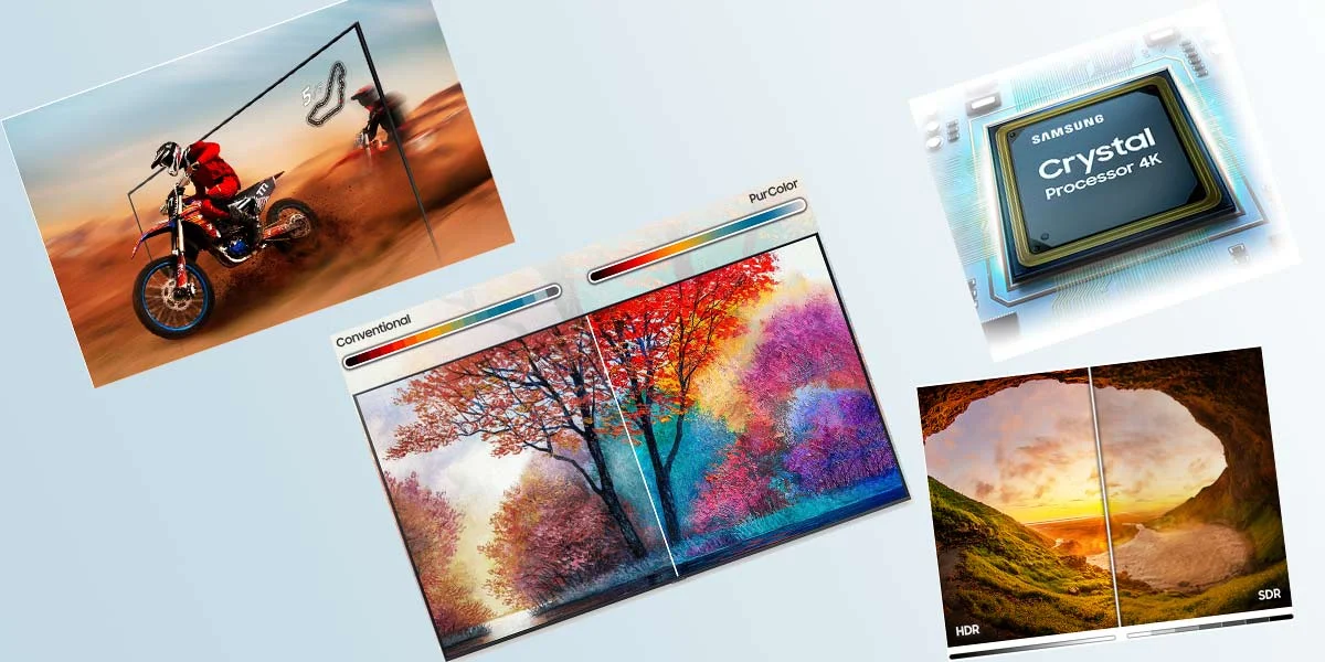 هر حرکت روی صفحه نمایش فوق العاده نرم و تیز خواهد بود. تلویزیون UHD به طور خودکار محتوا را فریم به فریم برای جزئیات با کیفیت بالا و رندر دقیق بهبود می بخشد. رنگ هایی را تجربه کنید که برای عملکرد بهینه تصویر تنظیم شده اند تا تصویری واقعی ارائه دهند. با پردازنده قدرتمند کریستال 4K هر چیزی را که دوست دارید به وضوح خیره کننده 4K UHD تبدیل کنید. تصویر و عملکرد واضح را تجربه کنید. فناوری Motion Xcelerator به طور خودکار فریم ها را برای یک تصویر صاف تخمین زده و جبران می کند. و از طریق آن می توان میان رنگ ها تمایز ایجاد کرد، و همه رنگ هایی را که در تصاویر غیر HDR از هم قابل تشخیص نیستند برای کاربر قابل مشاهده کرد.