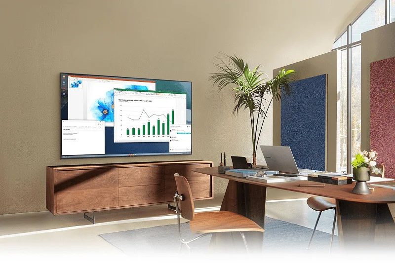 خانه خود را بدون کابل وصل کنید و از پتانسیل کامل تلویزیون UHD خود استفاده کنید. با اتصال بی سیم کامپیوتر، لپ تاپ و تلفن، واقعاً از آموزش از راه دور و دفتر کار خانگی لذت خواهید برد . انعکاس فیلم یا موسیقی از دستگاه تلفن همراه خود به تلویزیون به سادگی یک ضربه است. وقتی با دستگاه تلفن همراه خود به تلویزیون ضربه میزنید، تلویزیون ضربه را حس میکند و بهطور خودکار منعکس میشود. جابجایی به تلویزیون و ادامه لذت بردن از محتوای مورد علاقه خود، سریع و آسان است.