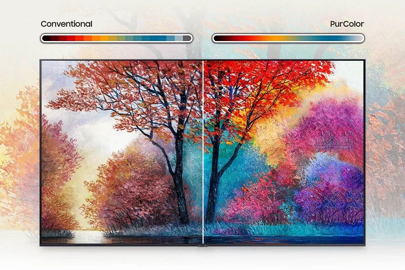 دنیای مورد علاقه شما با روشن ترین رنگ ها درست در خانه شما زنده می شود. فناوری PurColor به طور واقع بینانه تمام طیف رنگ را بیان می کند و به شما امکان می دهد کاملاً خود را در تماشا غرق کنید. با PurColor ، در حین تماشای یک فیلم تقریباً احساس می کنید که در فیلم هستید. این تلویزیون را قادر می سازد تا طیف رنگی بسیار گسترده ای را برای عملکرد تصویر بهینه و تجربه تماشای غوطه ور ارائه دهد.
