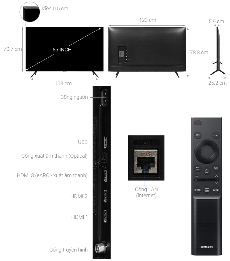 درگاه های ارتباطی در تلویزیون ها به شما کمک می کنند که تلفن اسمارت، لب تاب، فلش و مموری و دیگر وسایل خود را به تلویزیون متصل کنید. این تلویزیون AU7200سامسونگ دارای 3 پورت ورودی HDMI 2.1 و 1 پورت USB می باشند. در واقع این تلویزیون دارای درگاه های متنوع دیگر همچون پورت خروجی صوتی دیجیتال، کامپوزیت، خروجی هدفون، پورت شبکه LAN و 2 ورودی آنتن می باشد. این تلویزیون هوشمند سامسونگ از قابلیت اتصال به بلوتوث و وای فای برخوردار می باشد و همچنین دارای گیرنده های داخلی و گیرنده خارجی نیز می باشد.