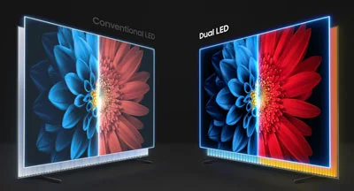 فناوری Dual LED: ویژگی عالی دیگری که در تلویزیون ساسمونگ وجود دارد و یکی دیگر از قابلیت های بی نظیر آن محسوب میگردد فناوری Dual LED است. در واقع این تلویزیون در بخش نمایشگر خود دارای دو نوع LED میباشد. که به تعبیری به نوع سرد و گرم نام گذاری شده اند. این دو صفحه جهت توازن رنگی و نمایش طبیعی تر و زنده تصاویر کاربرد فوق العاده ای دارند.