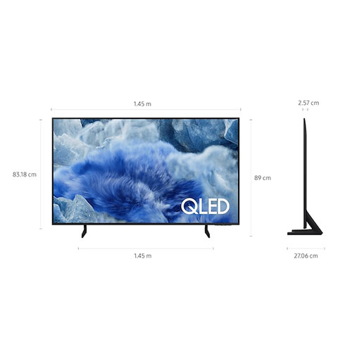 تلویزیون سامسونگ 65Q8F محصول سال 2025 شرکت سامسونگ دارای نمایشگر 65 اینچ است و از تکنولوژی کیولد (QLED) بهره مند میباشد. دارای فناوری های جدید است و از هر نظر عالی ساخته شده است. بدنه با طراحی زیبا و مدرن داشته و کیفیت تصویر فوق العاده ای دارد. بدنه با ضخامت کم و باریک با طراحی AirSlim برای این تلویزیون سامسونگ ساخته شده و از حاشیه های کم بهره مند است. در واقع تقریباً بدون قاب (Bezel-less) میباشد. به طور کلی جلوه ای مدرن و لوکس به مکانی که در آن جا قرار داده میشود خواهد داد. همچنین صدایی پر قدرت برای این تلویزیون 65 اینچ طراحی شده است و از قابلیت های هوشمند زیادی برخوردار میباشد. از این رو در میان هم نوعان خود جایگاه ویژه ای داشته و از تلویزیون های پر طرفدار به شمار می آید. با توجه به اندازه 65 اینچی که دارا بوده جهت اسافاده برای اتاق های با متراژ متوسط به بالا مناسب است. دارای فناوری QLED بوده که رنگ های خالص تر، زنده و طبیعی را برای هر تصویر ایجاد میکند. طیف رنگی گسترده و بیش از یک میلیارد رنگ را دارا میباشد که در نمایشگرهای LED این میزان طیف رنگی ممکن نیست. کیفیت تصویر این تلویزیون کیولد سامسونگ K4 با روزولوشن 3840×2160 پیکسل است. بهترین وضوح تصویر را در بین دستگاه های صوتی و تصویری دارا میباشد. به همین دلیل هر آن چه را بر روی نمایشگر خود ظاهر میکند با دیده شدن جزئیات همراه بوده و وضوح بالایی دارند. کوچکترین جزئیات در صحنه به خوبی نمایش داده خواهد شد. واقعی بودن نتیجه وجود چنین رزولوشن بالایی است. از دیگر خصوصیاتی که تلویزیون سامسونگ دارا بوده داشتن پردازنده Q4 AI Processor میباشد. در آن از الگوریتم های هوش مصنوعی استفاده شده است. این پردازنده قادر میباشد تا کیفیت تصویر را بهبود ببخشد و قابلیت ارتقاء کیفیت تصویر برای تصاویر قدیمی را دارد و آن ها را در سطح K4 بالا میبرد. در ادامه به بیان بیشتر و بهتر ویژگی های تصویر در این تلویزیون 65 اینچ سامسونگ خواهیم پرداخت. علاوه بر تصویر عالی از سیستم صوتی پر قدرتی نیز بهره مند است و دارای بلندگوهای با کیفیت و مرغوب میباشد که قادراند تا صدایی با توان صوتی کلی 20 وات را ایجاد کنند. سیستم صوتی 2 کاناله دارد. در بخش صوتی شاهد وجود فناوری های جدیدی هستیم که نمونه ای از آن ها صدای ردیابی اشیا یا همان OTS Lite و +Adaptive Sound هستند. این فناوری ها سبب میشوند تا صدایی غنی و شفاف را ایحاد کنند. همچنین تلویزیون سامسونگ قابلیت پشتیبانی از تکنولوژی Q-Symphony را دارد. وجود این فناوری باعث میشود تا صدای تلویزیون یا ساندبار هماهنگ باشد. این تلویزیون سامسونگ 65 اینچ هوشمند است و سیستم عامل تایزن Tizen دارد. با وجود چنین سیستم عاملی از امکانات هوشمند عالی زیادی بهره مند میباشد. برگزیده ای از قابلیت های این تلویزیون سامسونگ AirPlay 2 و Multi-View جهت نمایش همزمان چند محتوا، دستیار صوتی و ... هستند.